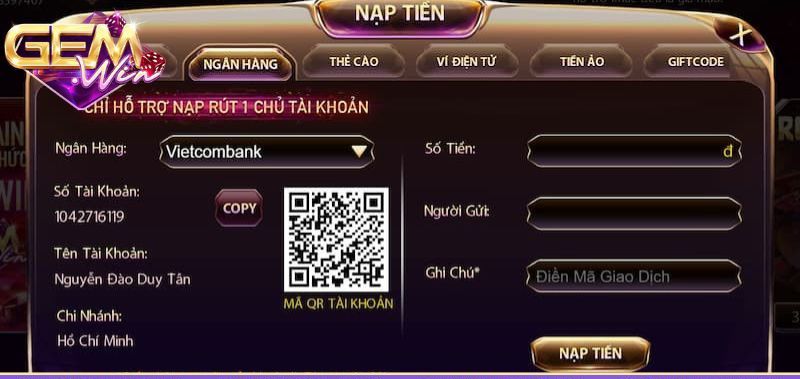 Nạp tiền vào tài khoản tại Gemwin là một bước quan trọng không thể thiếu khi bạn quyết định tham gia cá cược tại cổng game này. Đây không chỉ đơn thuần là một giao dịch tài chính mà còn là cầu nối giúp bạn trải nghiệm những trò chơi giải trí đa dạng và hấp dẫn mà Gemwin cung cấp. Bài viết này sẽ hướng dẫn chi tiết cho bạn những cách thức nạp tiền hiệu quả, an toàn, và nhanh chóng nhằm giúp bạn có khởi đầu suôn sẻ khi đến với nhà cái Gemwin.